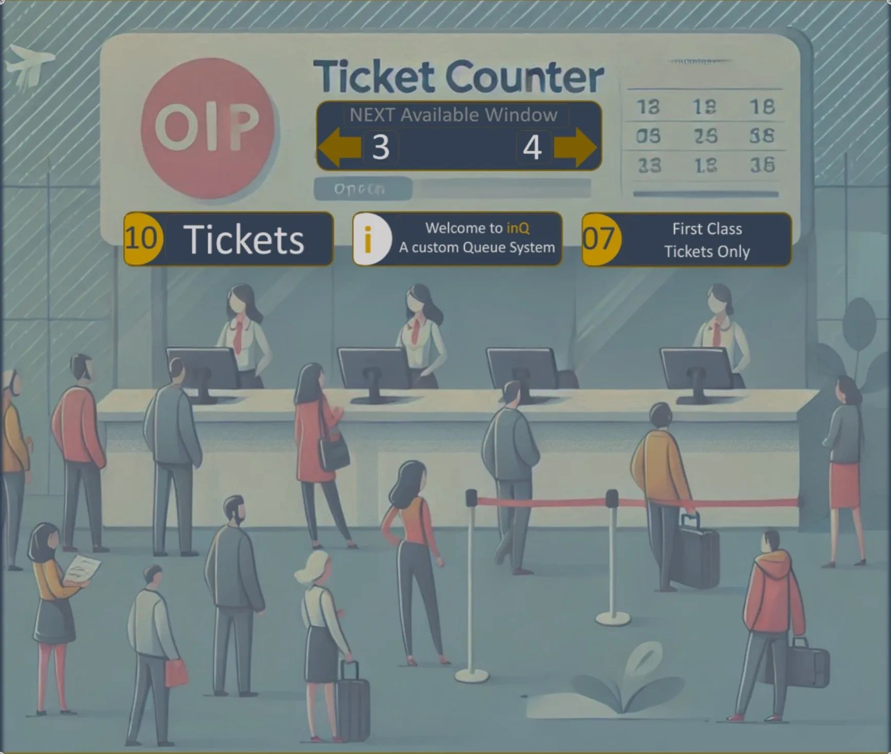 A Ticket Counter Information Display & Queue System. Designed to display user defined counter information and custom PA/Queue announcements.